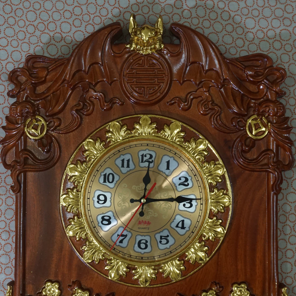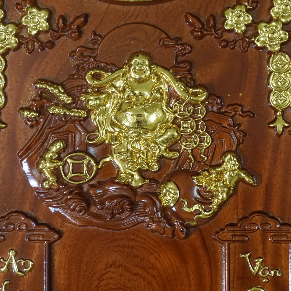 – Họa tiết: Hình dơi, hoa, đục nổi Phật Di Lặc, dát vàng 24K Đài Loan, chạm khắc hoa văn chi tiết tỉ mỉ.